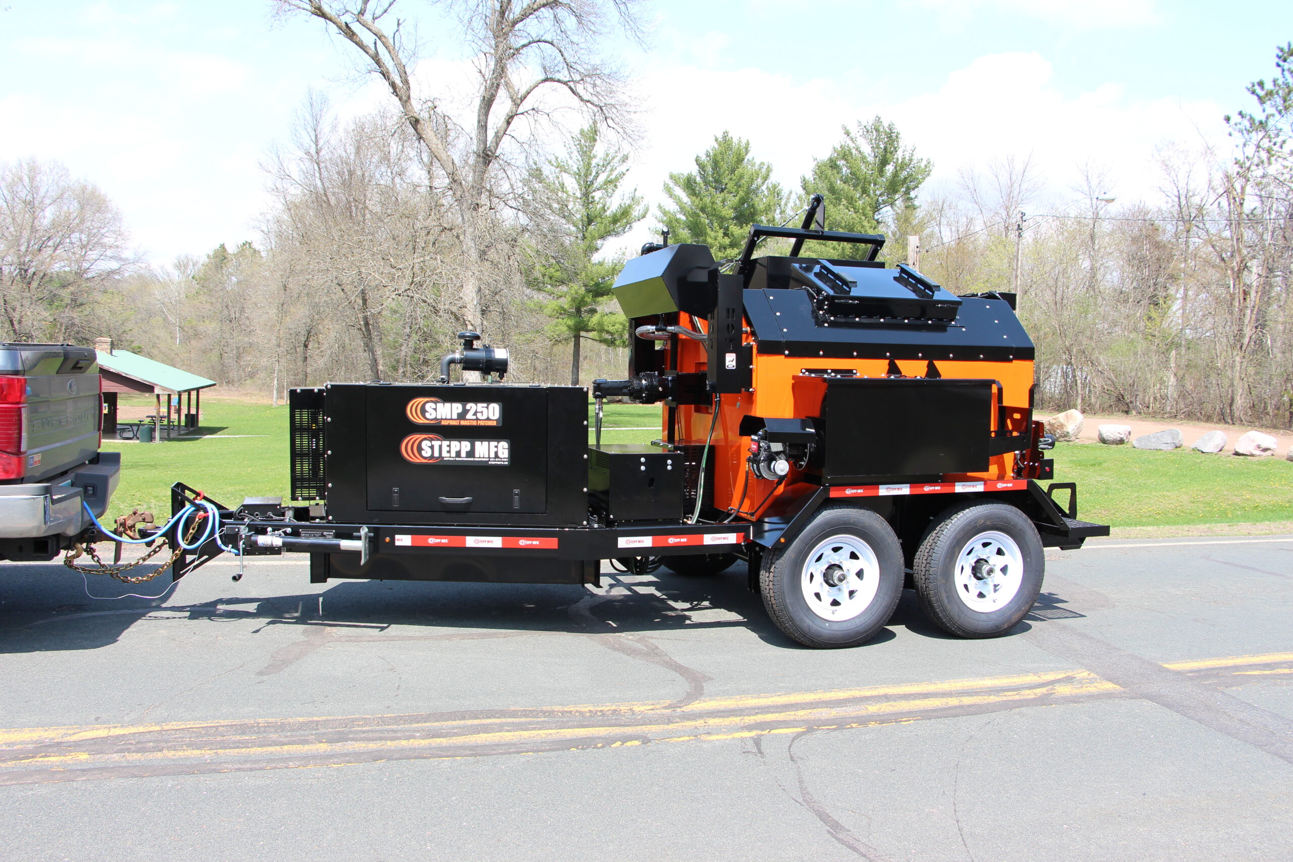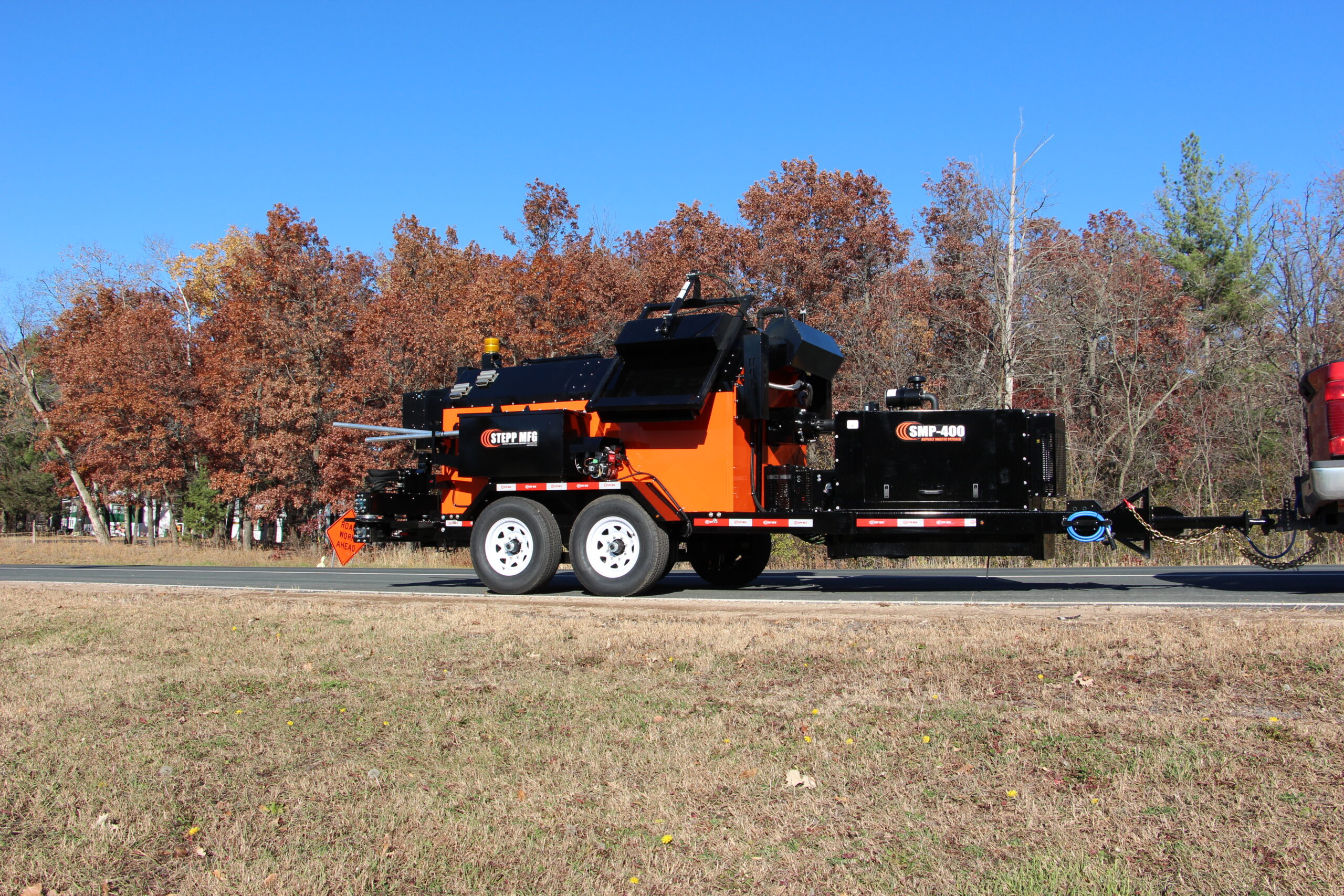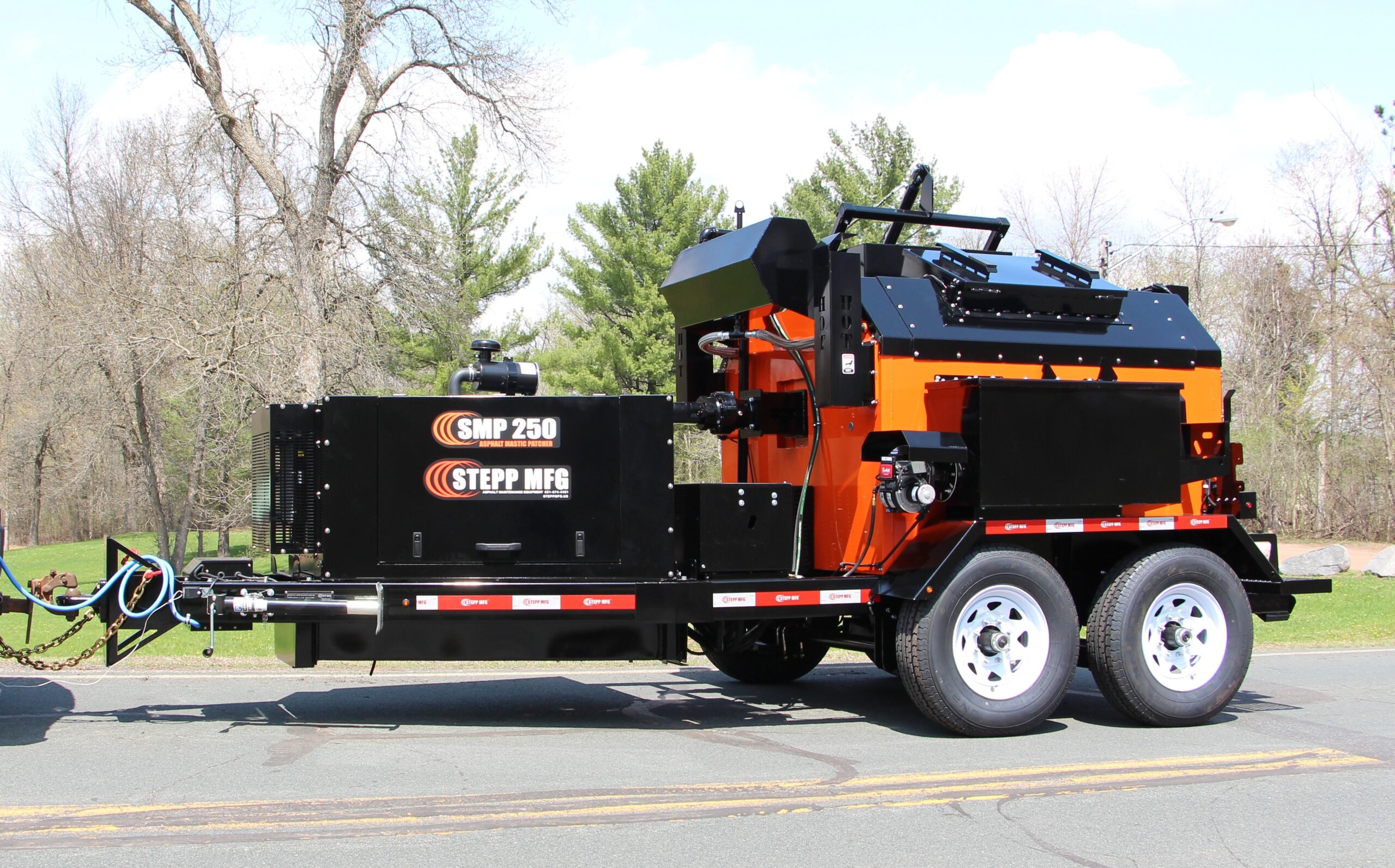 Stepp’s SMP Mastic Patchers are designed to heat and apply mastic patch materials for crack filling, bridge deck transitions and deteriorated asphalt and concrete roadways. They are to be equipped with diesel heating systems with automatic temperature controls, and hydraulically powered heated placing augers. Higher temp oil jackets coupled with the double knuckle auger placing system outworks and outperforms the competition.
