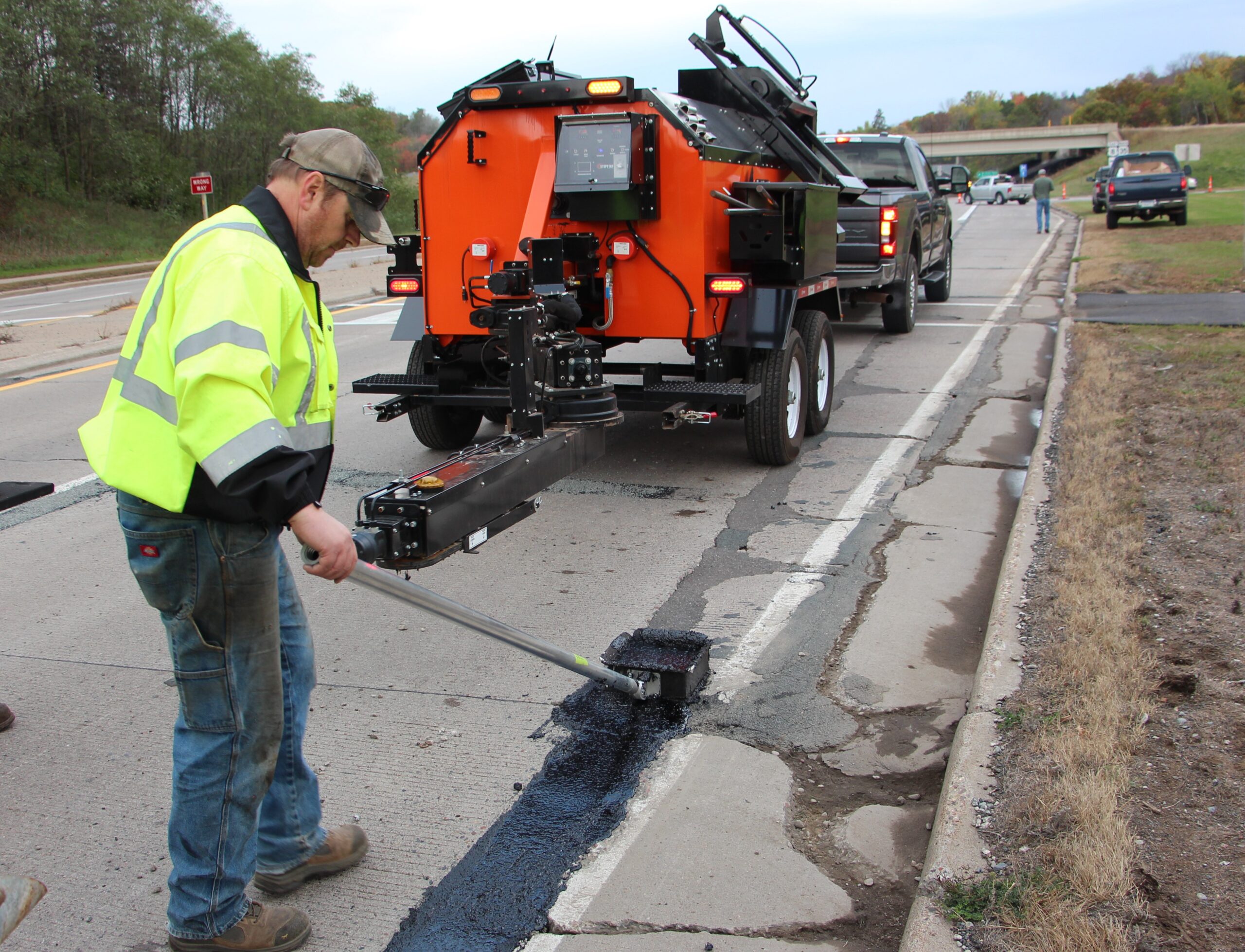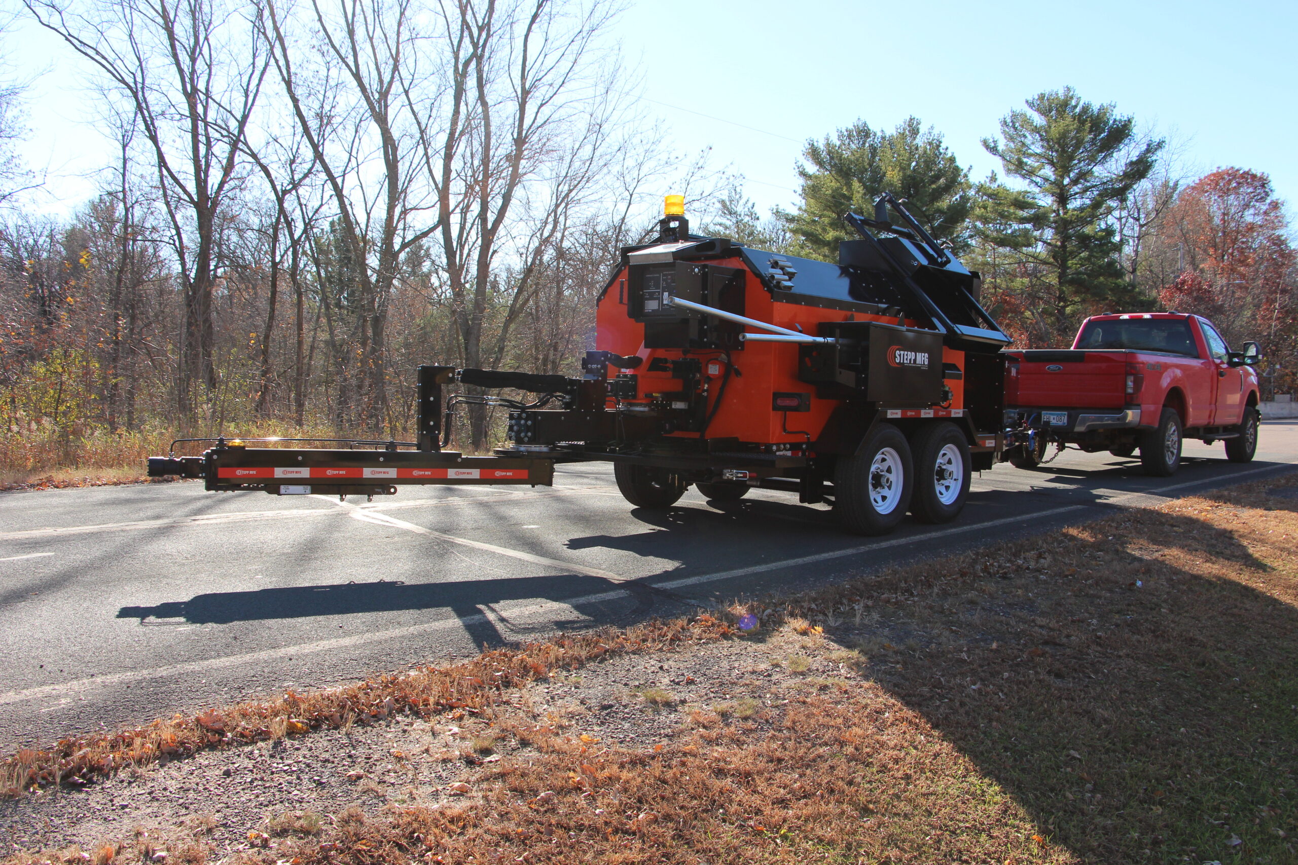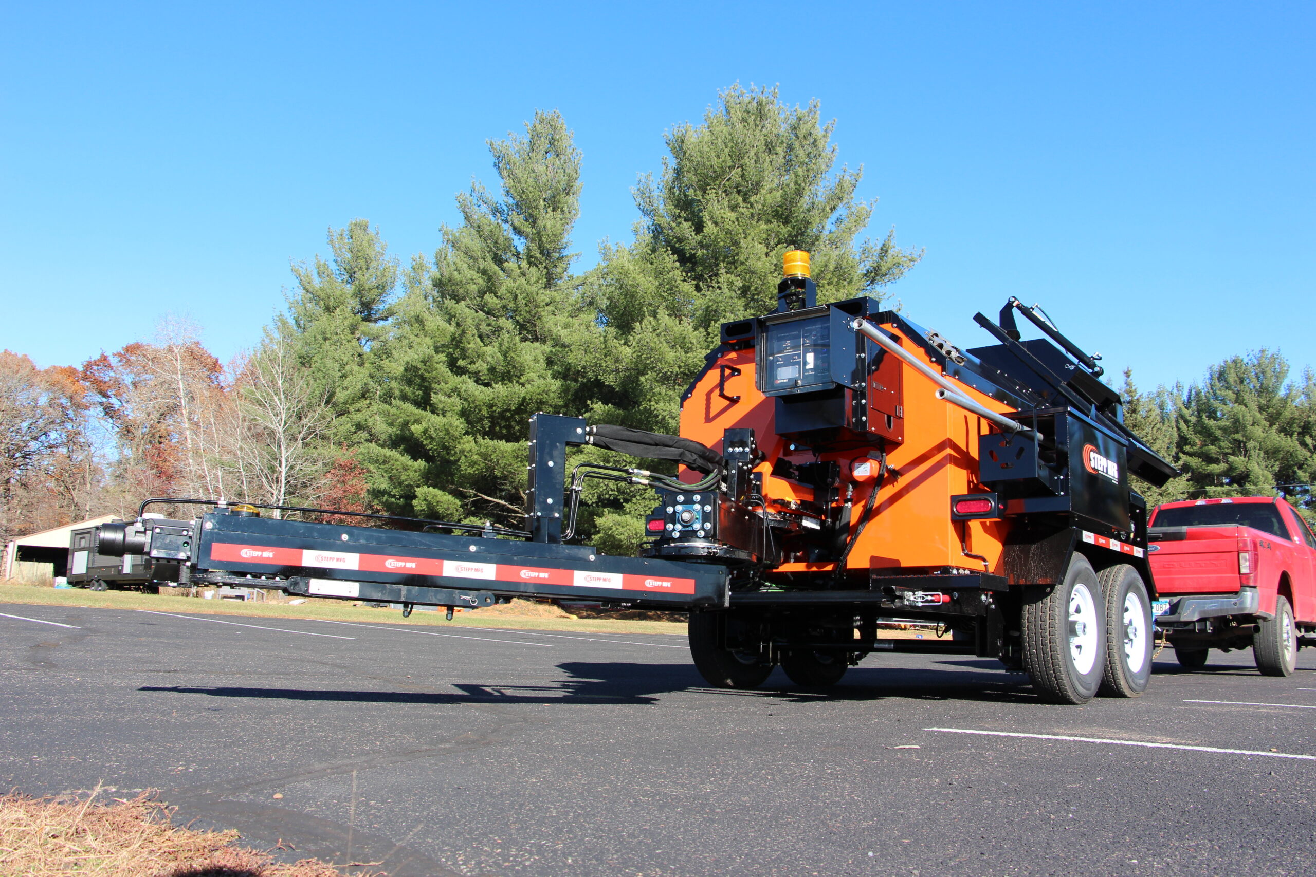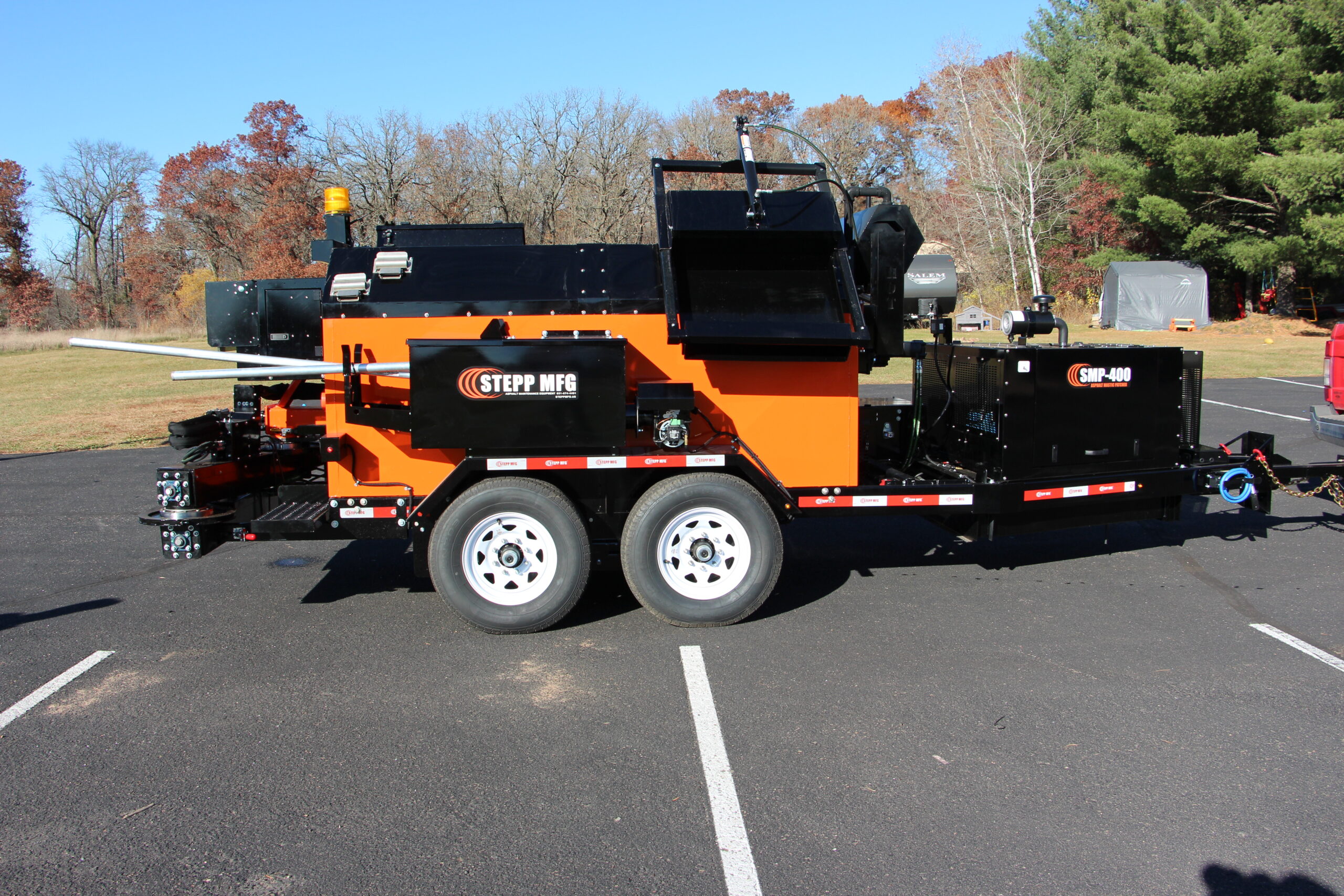 Stepp’s SMP Mastic Patchers are designed to heat and apply mastic patch materials for crack filling, bridge deck transitions and deteriorated asphalt and concrete roadways. They are to be equipped with diesel heating systems with automatic temperature controls, and hydraulically powered heated placing augers. Higher temp oil jackets coupled with the double knuckle auger placing system outworks and outperforms the competition.